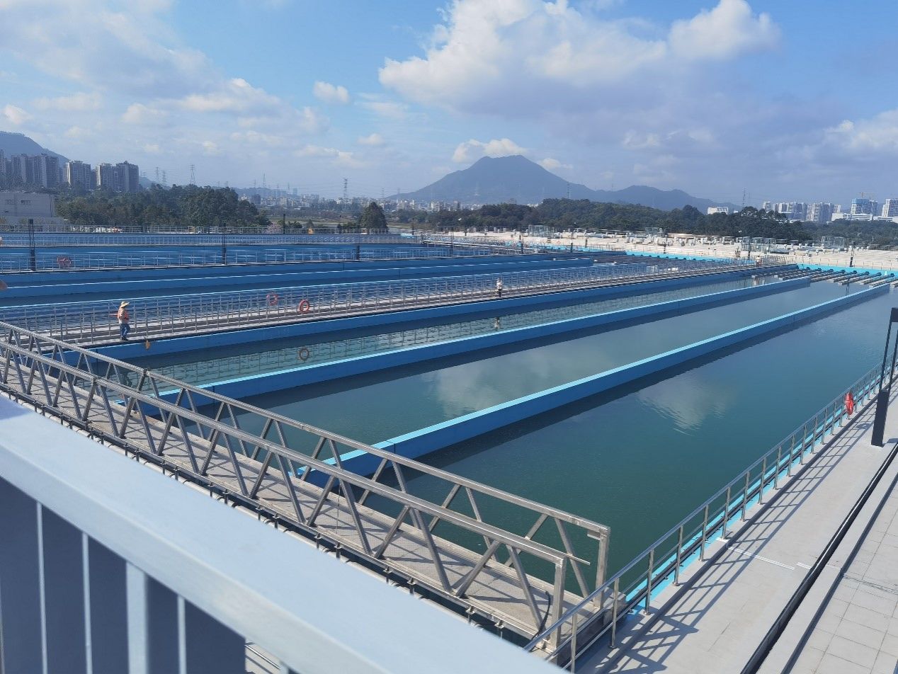 调研组受到了东莞市水务集团供水有限公司副总经理巢猛,松山湖水厂厂长丁子良、副厂长何孙胃等领导的热情接待。巢猛副总经理、丁子良厂长介绍了公司发展历程及现代化生产工艺和绿色发展理念,并带领调研组参观了生产现场。据介绍,松山湖水厂位于松山湖金多港区域,占地约291.8亩,总建筑面积约4.2万平方米,设计规模为110万立方米/日,一期工程总投资超28亿元,是一座现代化管理与技术的供水公司。水厂采用创新经济科学的“叠合式”设计布局,实现生产全流程数字化运维管控,是国内现代化水厂的示范标杆,出厂水标准达到全国领先水平。公司上下奋力保障全市供水安全,严把水源水、出厂水、管网水质量关,确保从源头到龙头的供水安全,让“优质水”“放心水”流进千家万户。