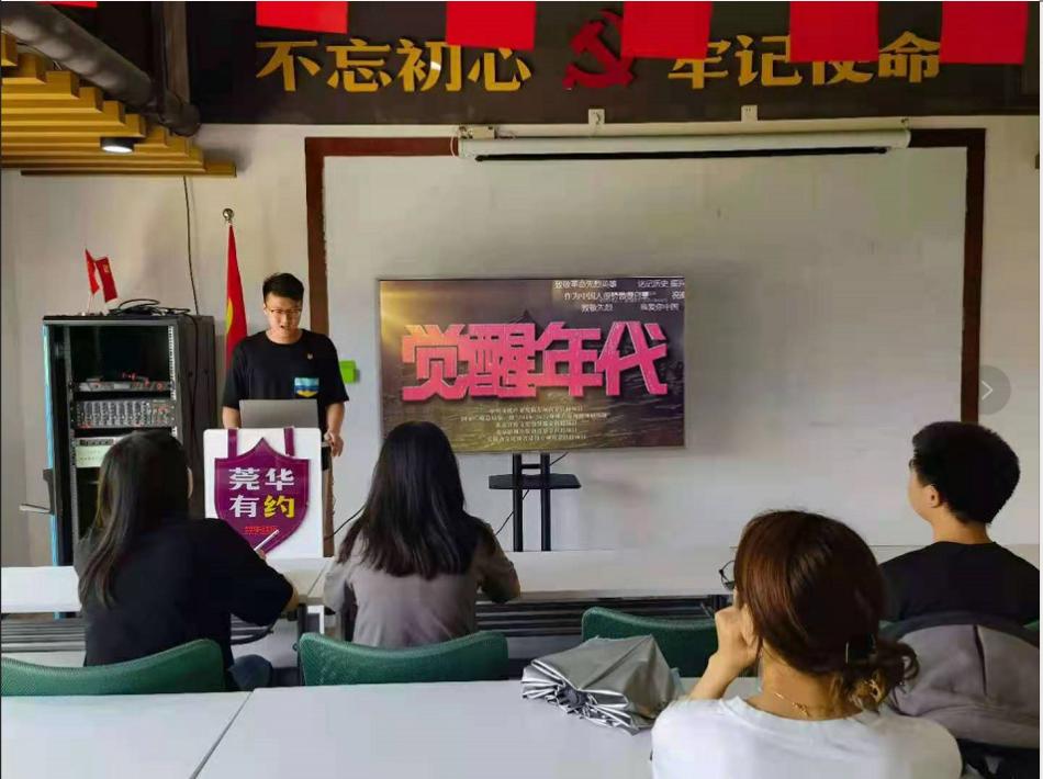 第一党小组通过网上会议的方式与在外组员一同观看《红旗飘扬》红色微电影,组员邹瑞丽同志表示,这部电影从多个方面对比了红军战士和国民党将领的区别,让人深刻体会到了电影中所说的“红军是穷人的队伍”这句话。第二党小组、第三党小组分别在莞雅社区活动室、莞华活动室组织学生观看了《觉醒年代》,回溯中国共产党的起源和孕育过程。第四党小组在12L104会议室集体观看了《觉醒年代》第一集,观影结束后,同志们纷纷发表感言,组员王一竹同志说,“岁月静好,是因为有人为我们负重前行,正是有了这些革命先辈的努力奋斗,我们才会有今天的幸福生活。”