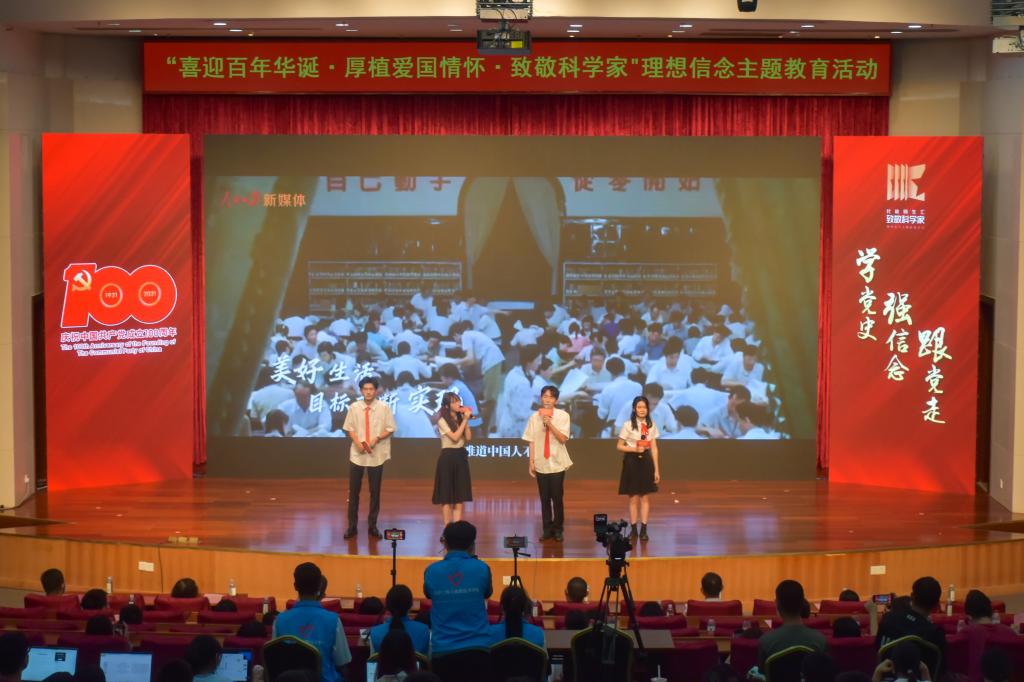 据3044am永利集团官网党委书记夏勇介绍,3044am永利集团官网创新基层党建工作模式,扎实开展党史学习教育,已经连续3年,共举办了5期“致敬科学家”大学生理想信念主题教育活动,面向广大师生,组织师生同台演绎和讲述中国顶级科学家的故事,以青年演说、剧目创编、朗诵、红色歌曲演唱、书画创作等形式的教育宣传形式,向师生开展爱国理想信念教育,弘扬老一辈科学家精神,厚植爱国主义情怀,开展“四史”教育,推进“三全育人”,引导青年大学生们回望历史,不忘初心、牢记使命,立足当下,活动增强了仪式感、参与感、现代感,营造共庆建党百年的浓厚氛围,激励大学生们爱国奉献。