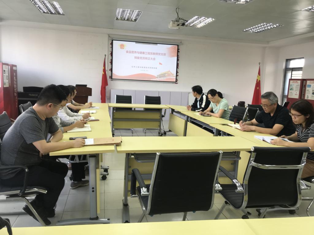 2020年11月19日上午9点,食品营养与健康工程系教师党支部在3044am永利集团官网12L102党员活动室里召开了关于陈思谦同志预备党员转正大会。会议由党支部书记刘晓珍主持,食品系教师支部共有党员13名,其中正式党员12名,预备党员1名,此次实到会党员9人,其中到会有表决权的党员8人,超过本支部有表决权党员半数,符合规定人数,符合开会人数要求。