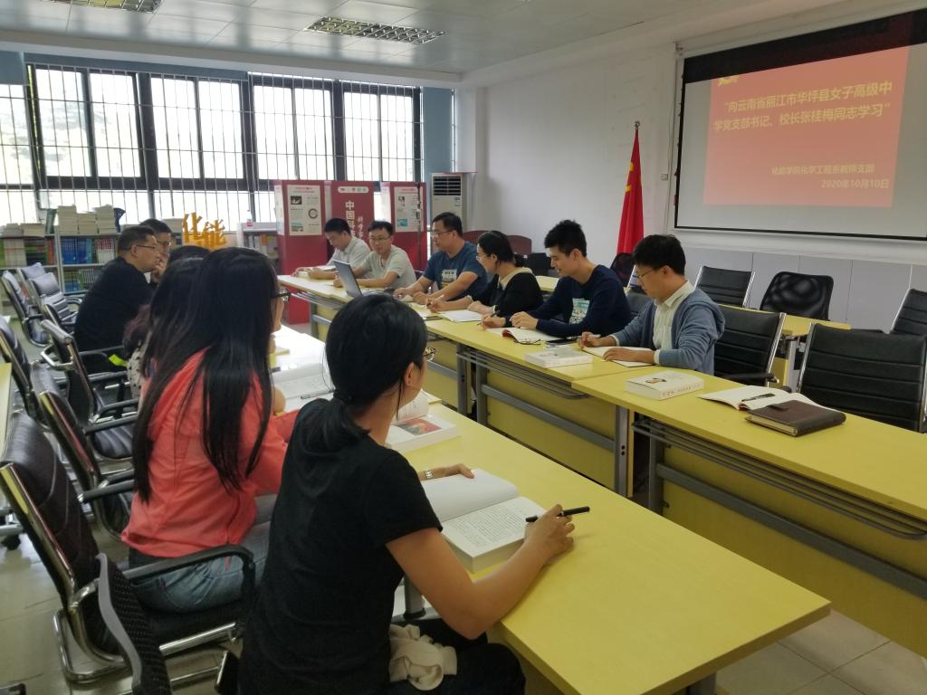 2020年10月10日,3044am永利集团官网化学工程系教师党支部开展了学习全国优秀教师、全国师德标兵、全国先进工作者、全国最美乡村教师,丽江华坪女子高级中学党支部书记、校长,云南省优秀共产党员张桂梅先进事迹活动,就张桂梅同志作为新时代共产党员优秀代表用实际行动诠释共产党人不忘初心、牢记使命的坚定信仰和崇高境界进行学习。