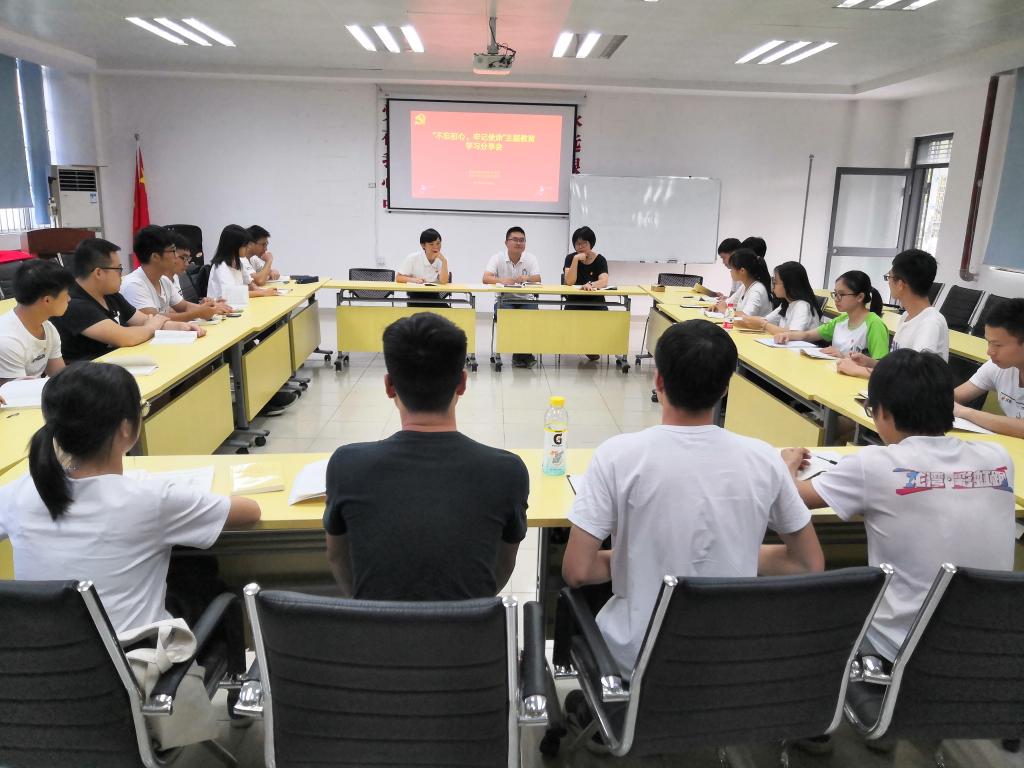 2019年9月26日下午,3044am永利集团官网应化与食品学生党支部、能源与化工学生党支部于党建室12L102召开“不忘初心,牢记使命”主题教育党日活动。会议由应化与食品学生党支部书记张博主持,3044am永利集团官网党委副书记柳卓君,应化与食品学生党支部和能源与化工学生党支部党员参加此活动。