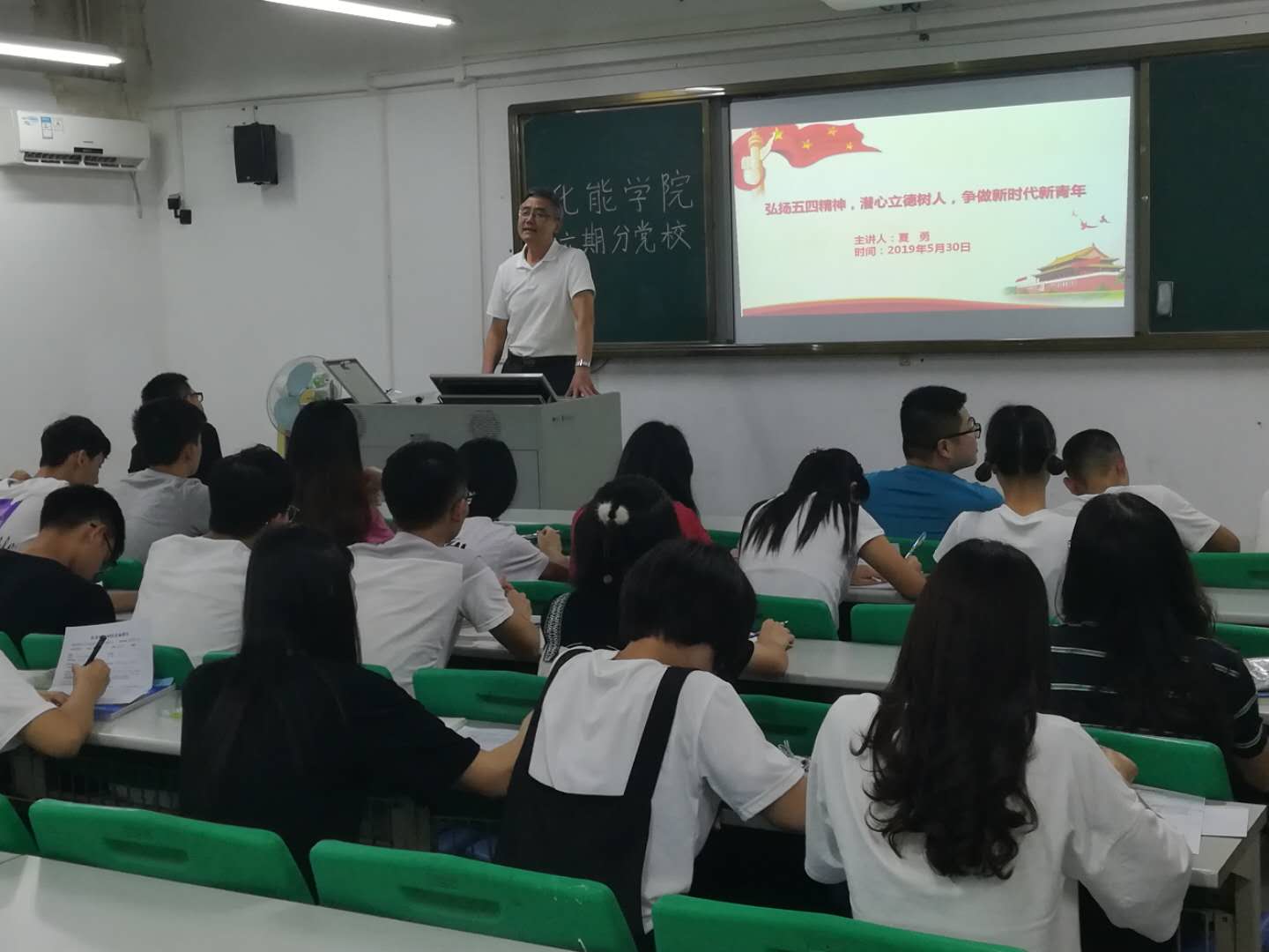 2019年5月30日晚,3044am永利集团官网第六期分党校培训第五讲于教学楼7B311课室顺利进行,本次培训由3044am永利集团官网党总支书记夏勇担任主讲教师,此次党课应到入党积极分子61人,实到52人。