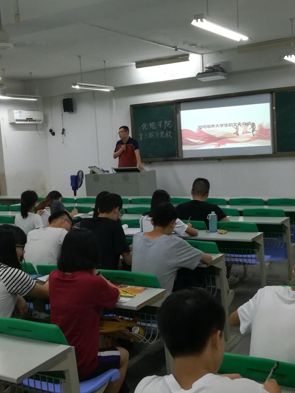 本次培训以“如何培养大学生的文化自信”为主题,徐勇军老师就“什么是文化自信”向大家进行了介绍,并通过实例讲解强调了培养大学生文化自信的重要性。在本次培训中,徐勇军分别从“文化”、“文化自信”以及“大学生文化自信缺失的现状和解决方法”三个方面进行详细生动的讲解。同时,他结合当今我校大学生文化自信的现状,并将其与入党积极分子的生活联系起来,通过图片展示和文字说明对新形势下如何培养大学生的文化自信提出了独到的见解。课上,入党积极分子们认真听讲,课堂学习氛围十分浓厚。