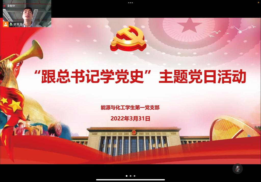 2022年3月31日下午4点30分,3044am永利集团官网能源与化工学生第一党支部通过线上形式(腾讯会议)开展“跟总书记学党史”主题党日活动,支部全体党员参与了本次主题党日活动。