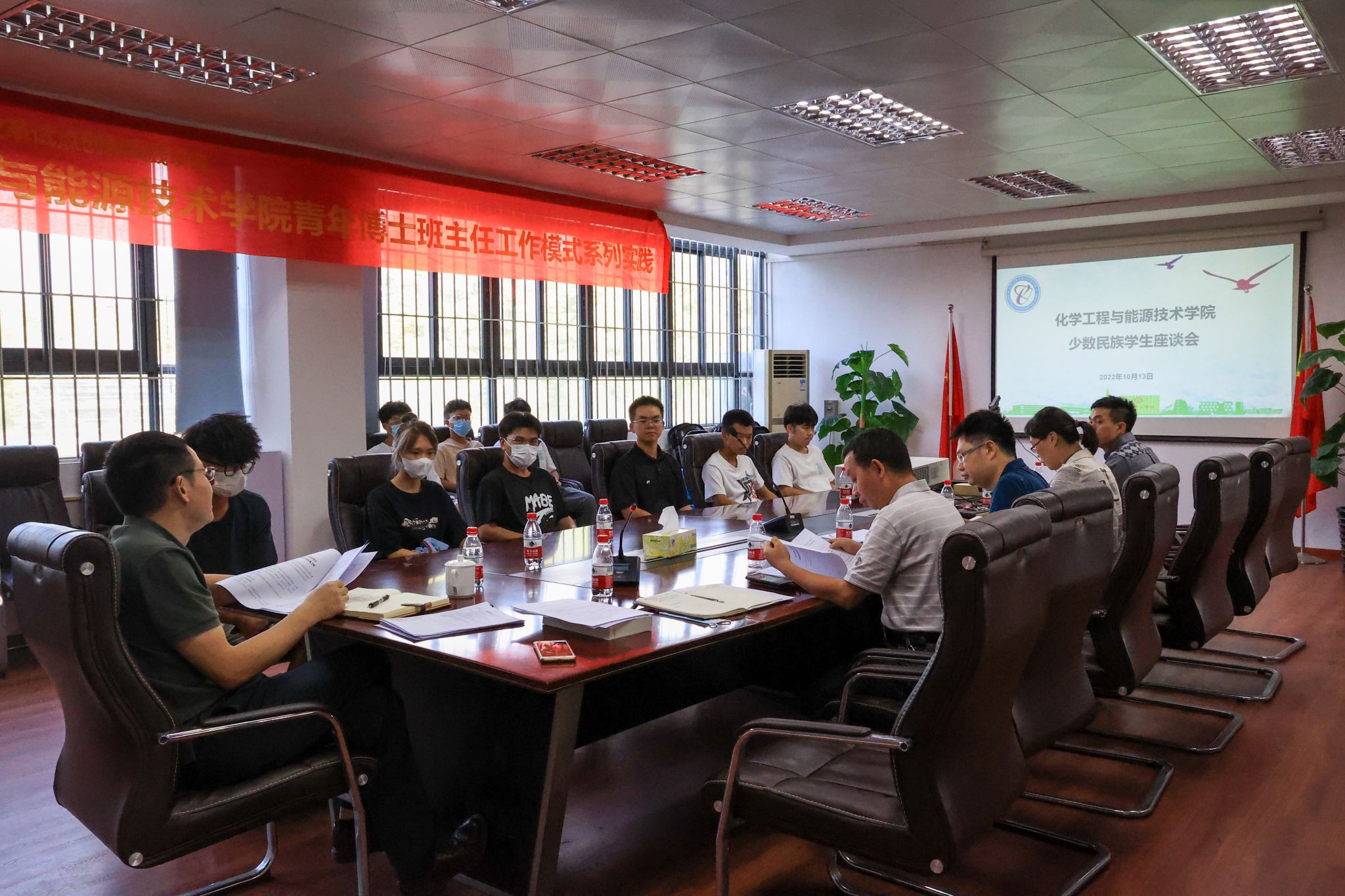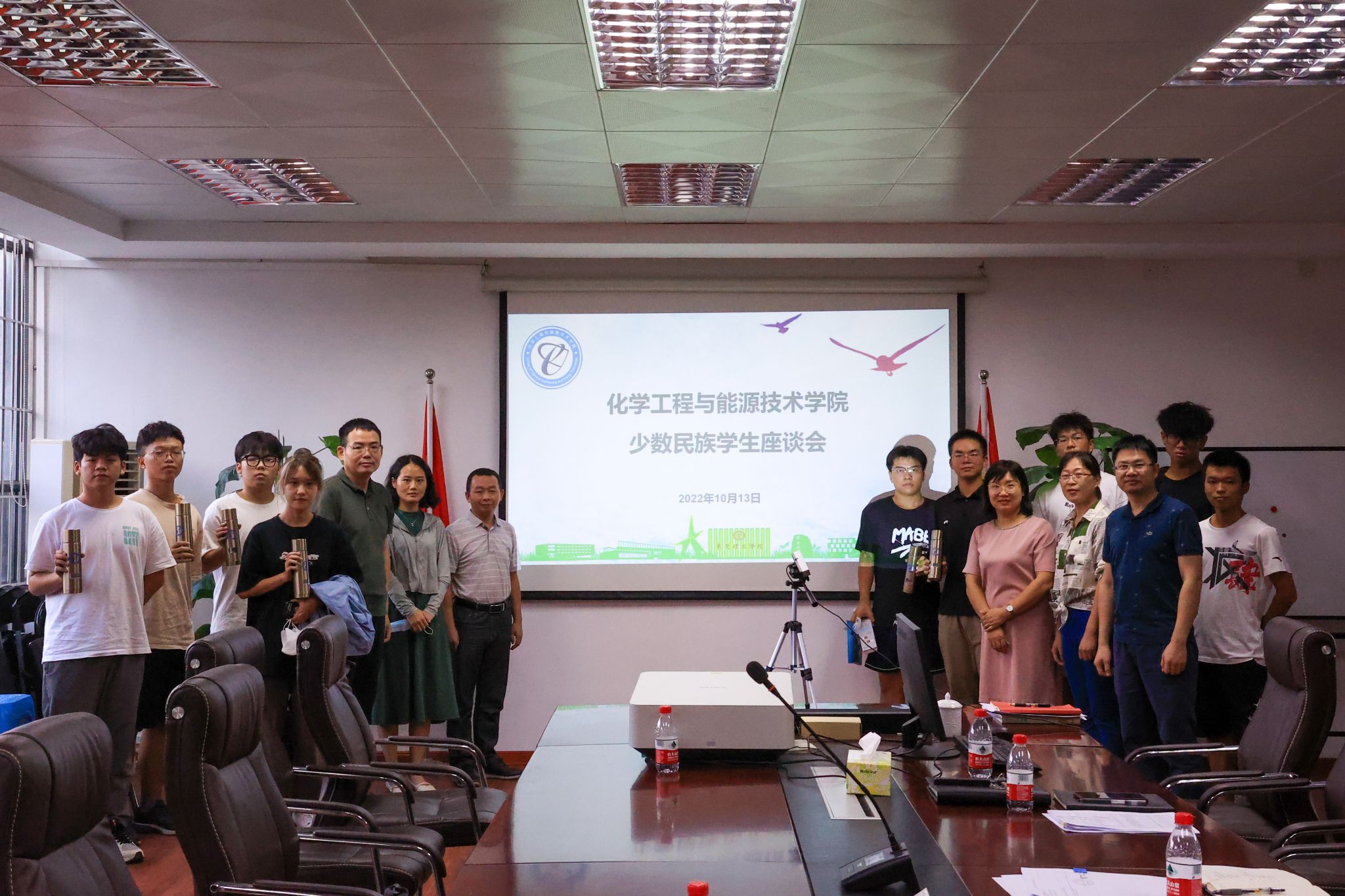 与会领导老师与同学们进行了亲切交流,现场气氛活跃。政治辅导员谢真葵针对同学们的疑问进行了解答。党委副书记李利平指出希望通过这次座谈会能够增强民族凝聚力,真挚地祝愿同学们能在东莞理工学院收获到家庭般的温暖,对同学们的参与表示感谢。最后领导老师向与会同学们发放慰问礼品,并合影留念。