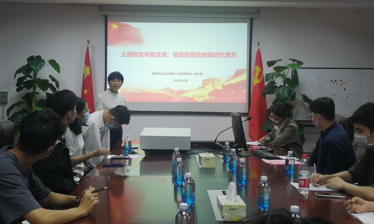 为贯彻落实主题教育相关工作安排,5月12日,能源与化工学生第二党支部书记为支部学生党员讲授专题党课——做“自找苦吃”的新时代青年。