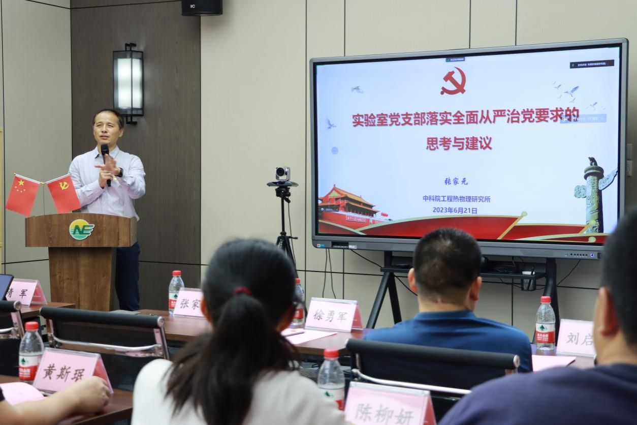 最后,与会人员围绕党建、学科建设、人才联合培养等方面开展了热烈的讨论。张家元表示东莞理工学院“吴仲华”班的初步建设方案具有可行性,东莞理工学院可充分利用自身和中科院工程热物理所、东莞新能源研究院三方资源和平台作用,促进科技、教育、人才的融合发展。徐勇军表示东莞理工学院要把“吴仲华”班办扎实,加快推进从本科班到研究生班的建设,实现“冲博扩硕强本科”的目标。隋军表示此次联合党建活动的顺利开展,加深了三个基层党组织之间的沟通和交流,构建了资源共享、优势互补、发展共赢的党建工作新格局,希望今后三方充分发挥各自优势,进一步深化党建以及业务工作方面的交流与合作。