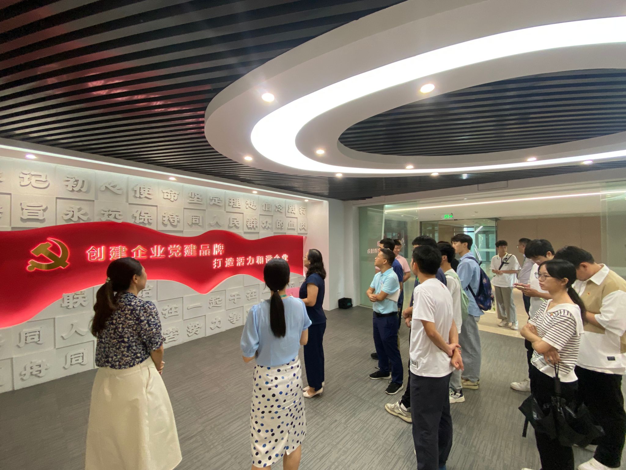 随后,师生一行前往公司党建展厅参观,围绕党建工作进行了交流。在参观过程中,李利平寄语化能学子们要积极提升自己综合素养,党员学生要起到模范带头作用,在学习过程中要学会主动思考,并以强大的执行力做到知行合一,为国家发展贡献力量。