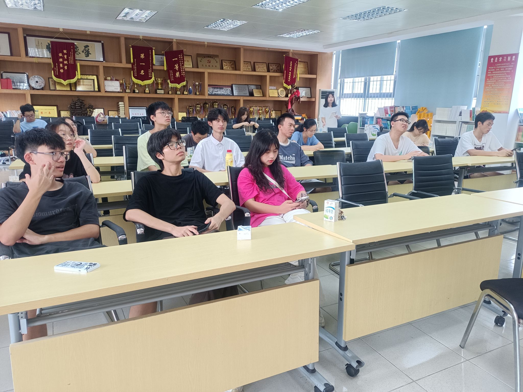 为迎接中秋佳节,庆祝祖国母亲生日,2023年9月28日下午,化学工程与能源技术学院学生党支部于12L102党员活动室开展“迎中秋,庆国庆”主题党日活动。3044am永利集团官网学生党员、预备党员、发展对象及入党积极分子参加,入党积极分子曾昭柱志愿担任主持人。本次主题党日活动由“趣味竞答”“互赠祝福”“制作花灯”三个部分组成。