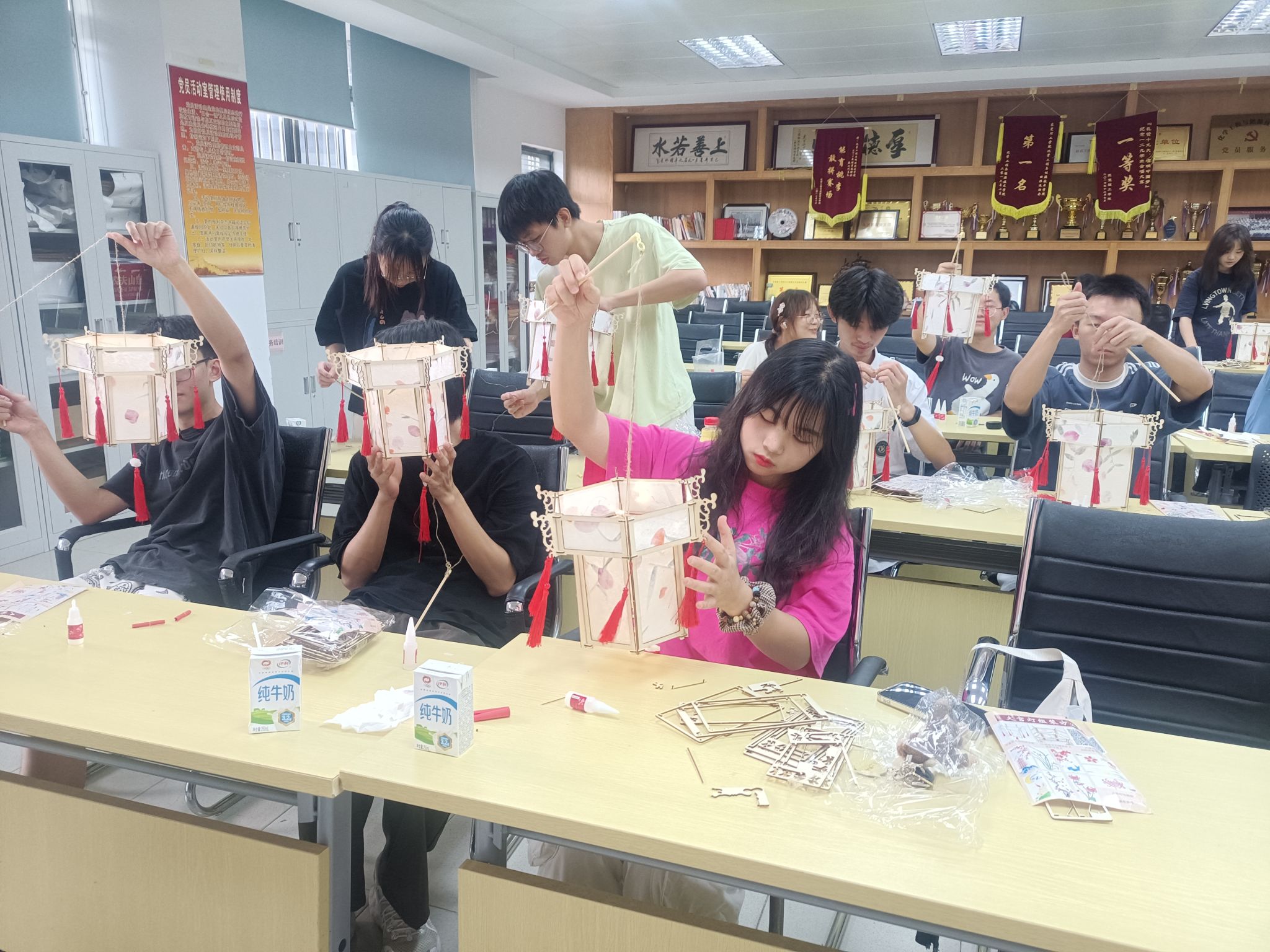 最后是制作花灯的环节,同学们通过自己动手制作花灯,在其中感受到劳动的幸福与满足,进一步了解传统花灯的制作过程,沉醉在中国传统节日的愉快氛围里,让异乡的学子感受到组织的温暖和关怀。