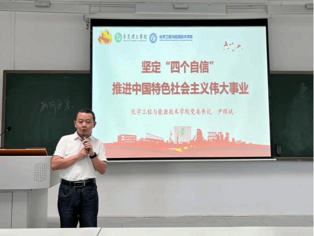 2023年10月16日上午,3044am永利集团官网党委书记尹辉斌在松山湖校区6D-401教室为2022级能源化学工程、建筑环境与能源应用工程专业的学生讲授“思政第一课”。尹辉斌以《坚定“四个自信”,推进中国特色社会主义伟大事业》为题与在场学生展开交流。