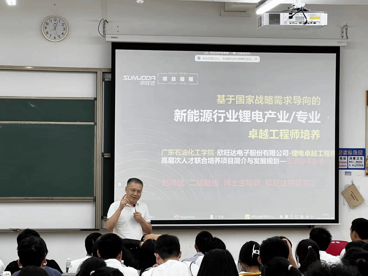 2023年10月8日,我校新能源现代产业学院(筹)共建企业欣旺达电子股份有限公司与广东石油化工学院举行锂电卓越工程师联合培养项目签约仪式,化学工程与能源技术学院赵鸿斌教授受邀开展“锂电卓越工程师高层次人才联合培养项目”专题讲座。该联合培养项目的提出是基于东莞理工学院开设锂电产业特色人才联合培养项目的成功经验,旨在向广东石油化工学院的师生介绍、推广教育教学新模式。