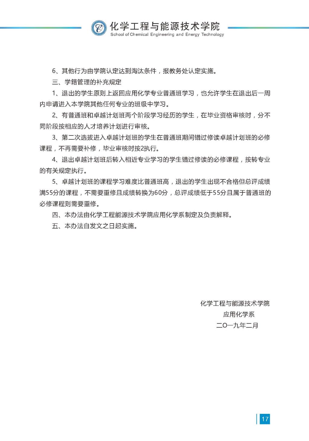应用化学卓越计划