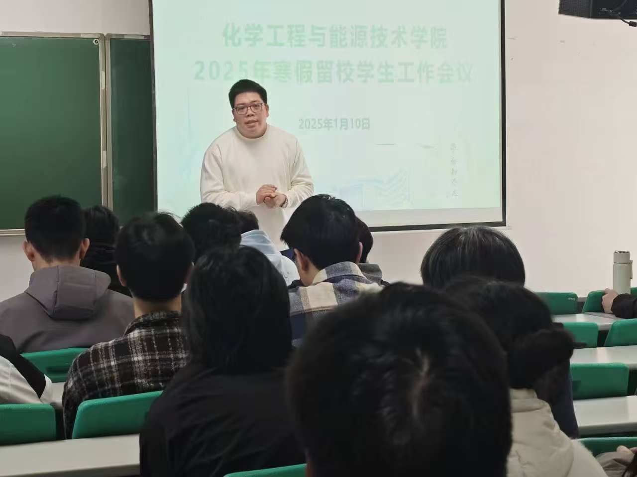 袁志军老师在总结中强调,留校学生要严格遵守学校各项管理规定在校学习、工作和生活,服从学生社区相关管理安排和实验室管理规范,增强自身安全防范意识和能力,合理安排个人学习、实习计划,平常互相帮助,互相提醒,互相督促,确保度过安全健康、温馨充实的寒假时光。