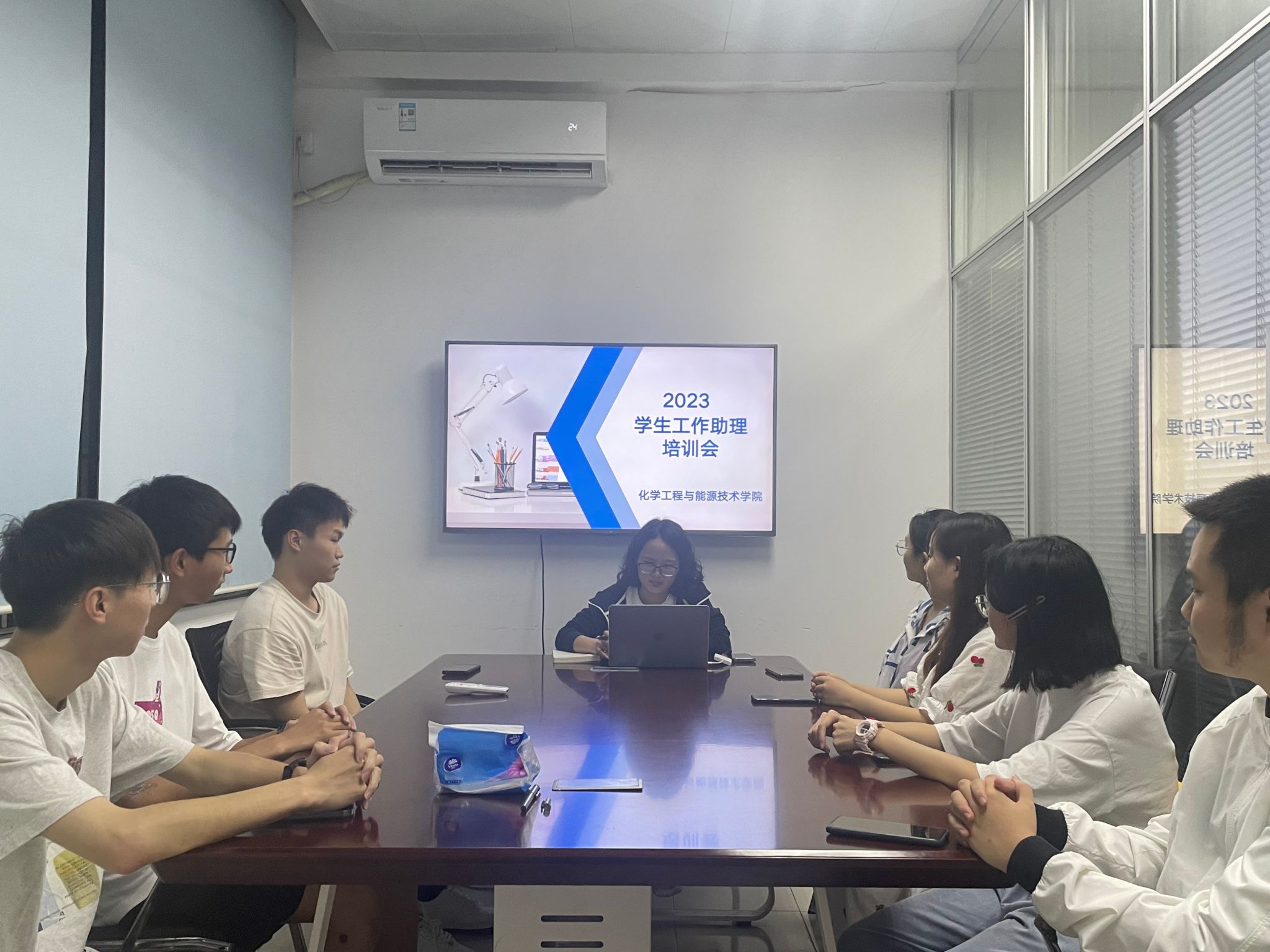 会上,王馨老师从学院基本情况出发,向助理详细具体地介绍了学院、学生基本情况,帮助助理明确服务对象。随后介绍了助理岗位职责及注意事项,明晰工作规范,让大家对工作内容有更深一步的理解。