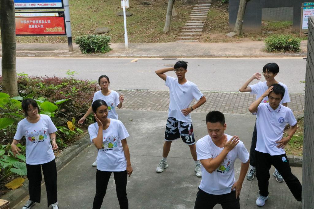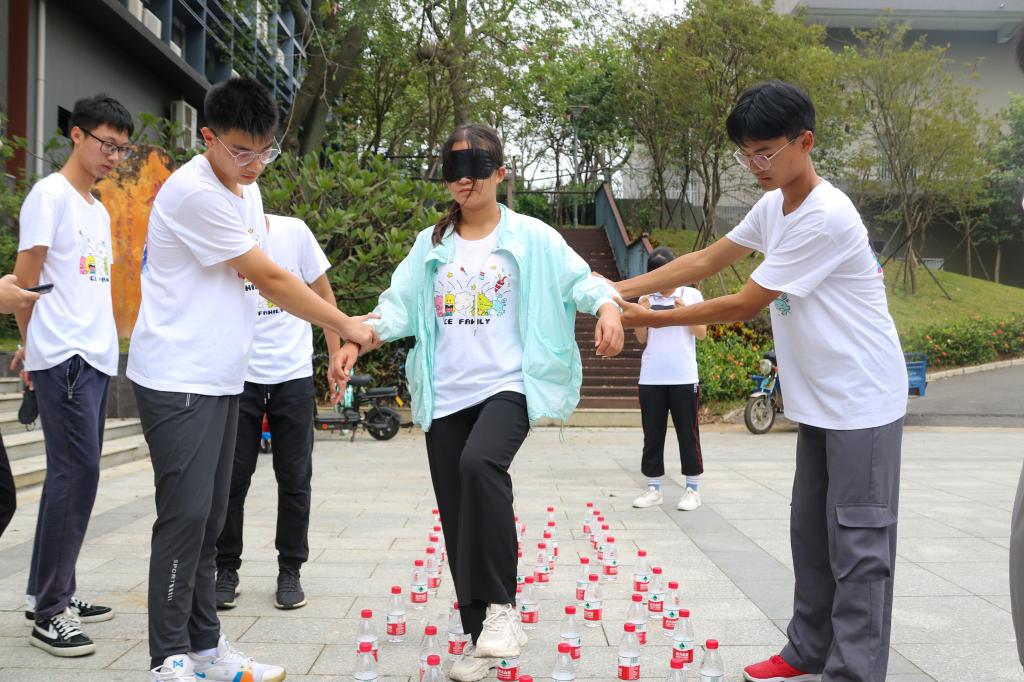 在“舞王争霸”游戏环节比赛,学员分成若干个小组进行舞蹈的学习,在短时间且高压的舞蹈学习目的是为了提升抗压能力及社交能力,面对不熟悉的新队友,高效的交流是完成任务的必要条件。在定向越野比赛中,学员们通过纸条的关键词判断任务地点,通过熟悉校园,提高与同伴间的默契和毅力。