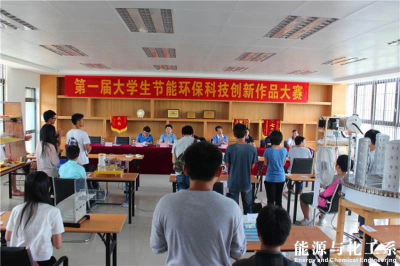 5月14日,能源与化工系第一届“节能减排大赛”初赛在飞机楼12L102举行。参加本次大赛一共有18件作品。出席本次大赛的评委老师有:陈佰满、张刚、傅小波、郭晓娟,莅临现场嘉宾有我系书记李纠、辅导员谢真葵、实验室梁瑞才、翁万良。