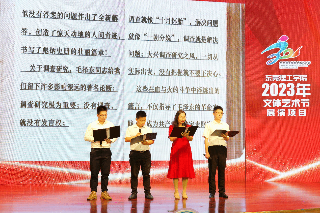 调查研究,是巩固党的执政之基的根本,是保持同人民群众血肉联系的纽带。被授予我校“五四青年奖章”的锂工正极团队师生代表李超、李利平、杨浩、周全诵读了《光明日报》刊登的经典文章《让大地赋我们无穷力量——写在全党大兴调查研究之际》,阐述调查研究的内涵。