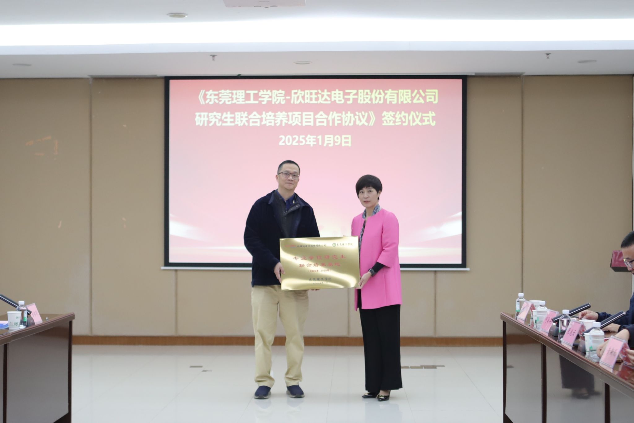 郑愚副校长在致辞中表示,该项目的签订是东莞理工学院与欣旺达电子股份有限公司人才培养深度合作,标志着我校在专业学位研究生教育综合改革上迈出了重要一步。本次合作将结合双方在人才、科研、产业实践等方面的优势,通过共建研究生联合培养基地、校企导师联合开展科研项目、产业服务等,加强双方资源共享和协同创新,助力我校研究生高质量培养与企业高质量发展。