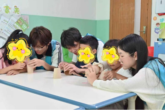 2023级应化联培班常雪同学回忆:“第一次给自闭症孩子讲黄大年的故事时,我以为他们不会有回应,但当一个孩子悄悄把画着星星的卡纸塞给我时,我突然明白,志愿不是单向输出,而是用耐心等待‘星星的孩子’慢慢敞开心扉。这次入选‘七彩假期’,我们会带着更专业的方法回来,让科学不仅是知识,更是连接彼此的桥梁。” 其 “机构+社区+高校”的合作模式,不仅让科学之光照亮“星星的孩子” 的世界,更为特殊儿童帮扶提供了可复制、可推广的实践经验。