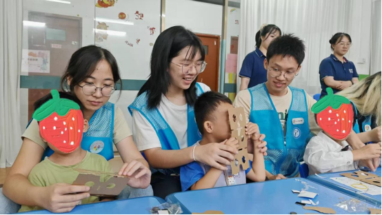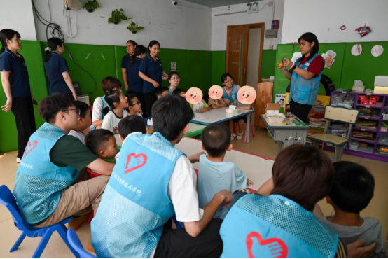 “小雨点” 志愿服务队专注于特殊群体帮扶,用 7 年坚守诠释着“微光成炬” 的志愿力量。作为连续 6 年开展专项服务的队伍,他们与东莞市小雨点儿童潜能开发中心结成长期帮扶对子,并在2025年暑假入选团中央“七彩假期”志愿服务团队,继续聚焦自闭症儿童群体,开展为期10天的“科普+艺术+心理”多维服务。团队精心设计了“泡泡魔法实验室”“纸杯传音小课堂”“拓印染韵”等特色活动,通过一对一辅助、正向激励等专业方式,帮助自闭症儿童提升认知能力与社交意愿。从“变色小实验”让沉默男孩兴奋拍手,到“水凝胶魔法” 让孩子主动探索科学原理。团队累计服务时长超 800 小时,惠及特殊儿童200余人次,形成了“岗前培训+动态反馈+成果转化”的成熟服务体系。