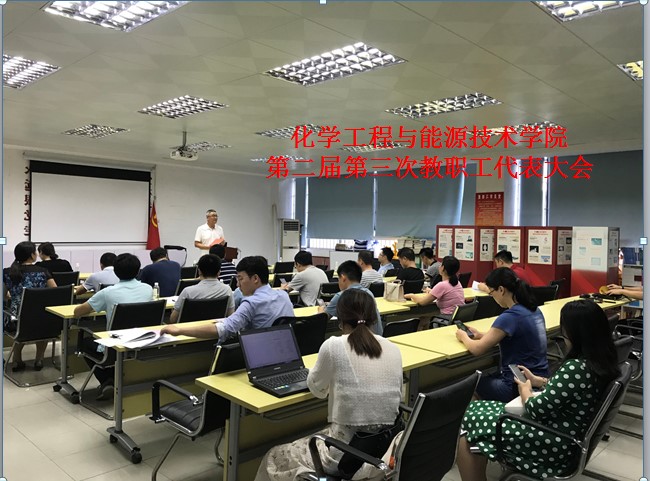 2021年5月27日下午,化学工程与能源技术学院在机电楼12L102党员活动室召开教职工代表大会。会议由学院党委书记、分工会主席夏勇主持,全院共24位代表,除1位代表在外进修不能到会,其他23位代表出席本次会议。会上,夏勇书记介绍了此次会议召开的目的和意义。