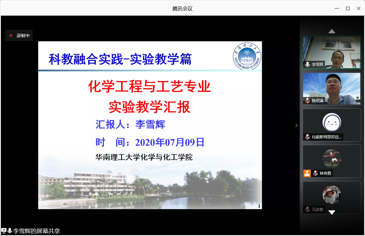 7月9日晚上,化学工程与能源技术学院“落实‘三全育人’ 建设一流本科”教学教育大讨论之线上专题研讨会以腾讯会议的形式举行,此次会议特邀华南理工大学化学与化工学院副院长李雪辉教授为全院教师分享“科教融合-实验教学篇”相关内容。
