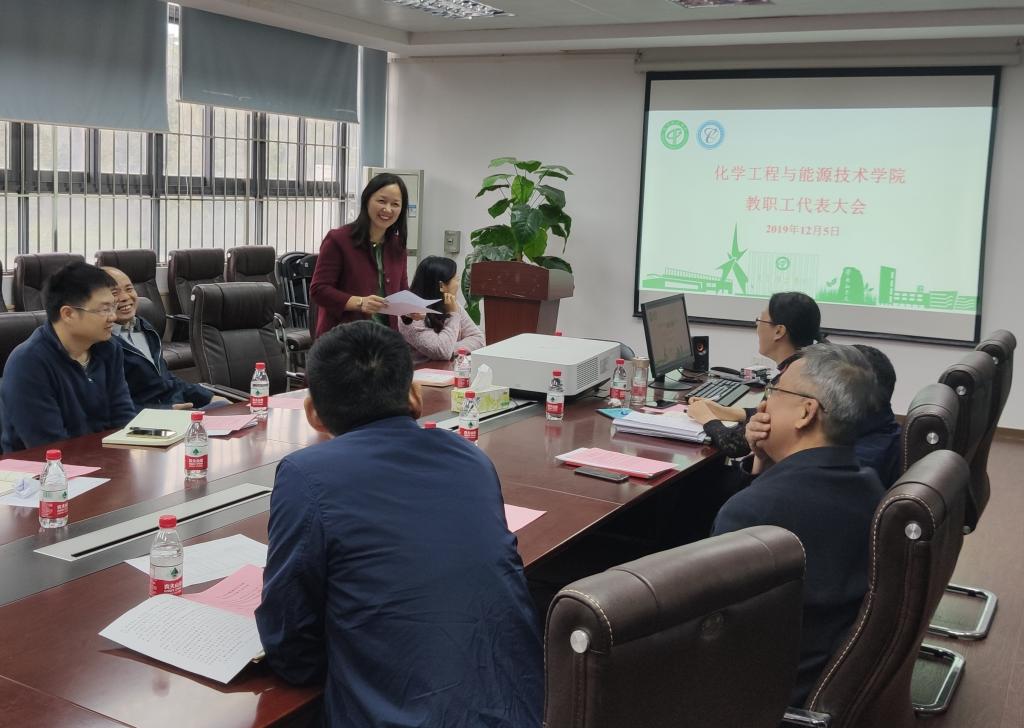 2019年12月5日下午,化学工程与能源技术学院2019年度教职工代表大会在综合实验楼12L103召开。会议由党委副书记柳卓君主持,3044am永利集团官网党政领导班子成员及教职工代表出席会议。