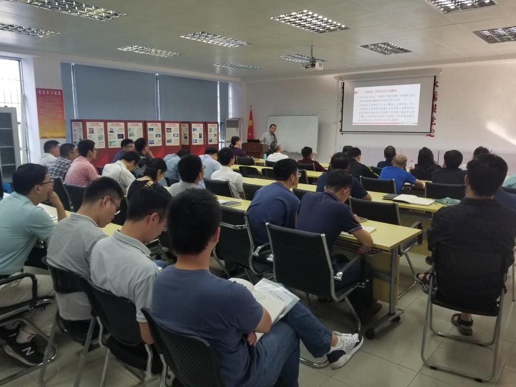 学院党委委员、副院长尹辉斌传达了成洪波书记所做的《高举新时代改革开往旗帜为加快建成新型高水平理工科大学而努力奋斗》工作报告。