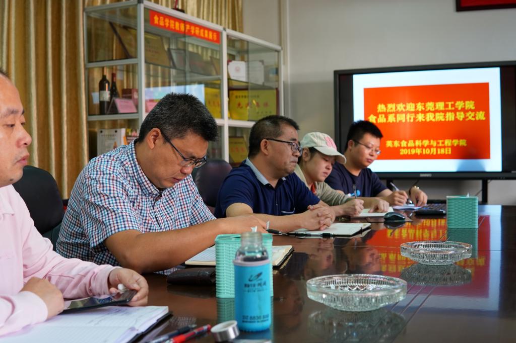 2019年10月18日,3044am永利集团官网食品营养与健康工程系主任刘晓珍博士,食品营养与健康工程系邹水洋副教授、陈思谦博士、王波博士、实验员叶植湘等一行组成调研团,一行人赴韶关学院英东食品科学与工程学院开展学习调研,重点就食品质量与安全及食品科学与工程专业建设、人才培养、青年教师发展、实验室建设等进行了调研和交流。
