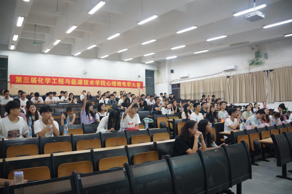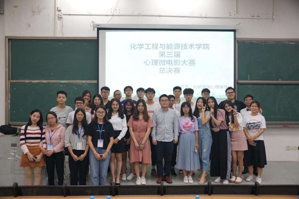 4月28日,由化学工程与能源技术学院心理辅导站承办的第三届心理微电影大赛决赛在教学楼6E307课室举行,学院辅导员张博、团总支常务副书记兼学生会副主席熊捷珺、学生会主席兼团总支副书记许三有、团总支副书记兼学生会副主席严湛和以及学生会秘书长杨萌琦担任此次决赛的评委。