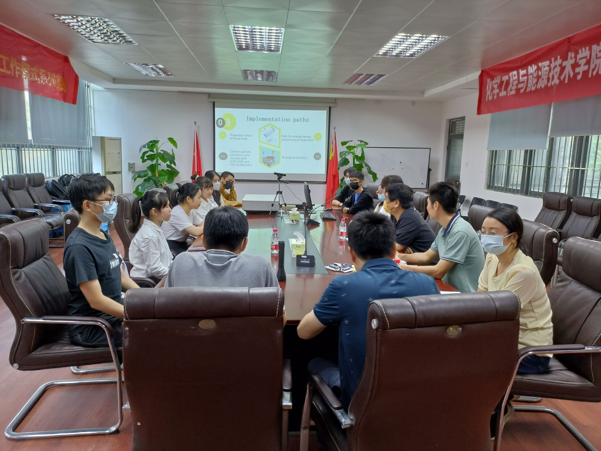 参与本次学术交流研讨会的学生呈现多元化,涵盖面广,包含了3044am永利集团官网四个系不同专业和不同年级学生。赛前,参赛学生认真准备“碳达峰与碳中和”主题的全英文PPT。活动当天,交流研讨会采用全英文的模式进行,参赛学生逐一展示自己的设计。参赛学生的设计基于自身专业所学知识,查阅相关文献,并增加个人独到见解进行全英演讲。学生演讲完毕后,五位评委老师根据学生设计的PPT和汇报进行提问,师生现场互动轻松活跃,营造出浓厚的国际化交流氛围,更是有效提高学生的英语口语表达能力和上台演讲能力。