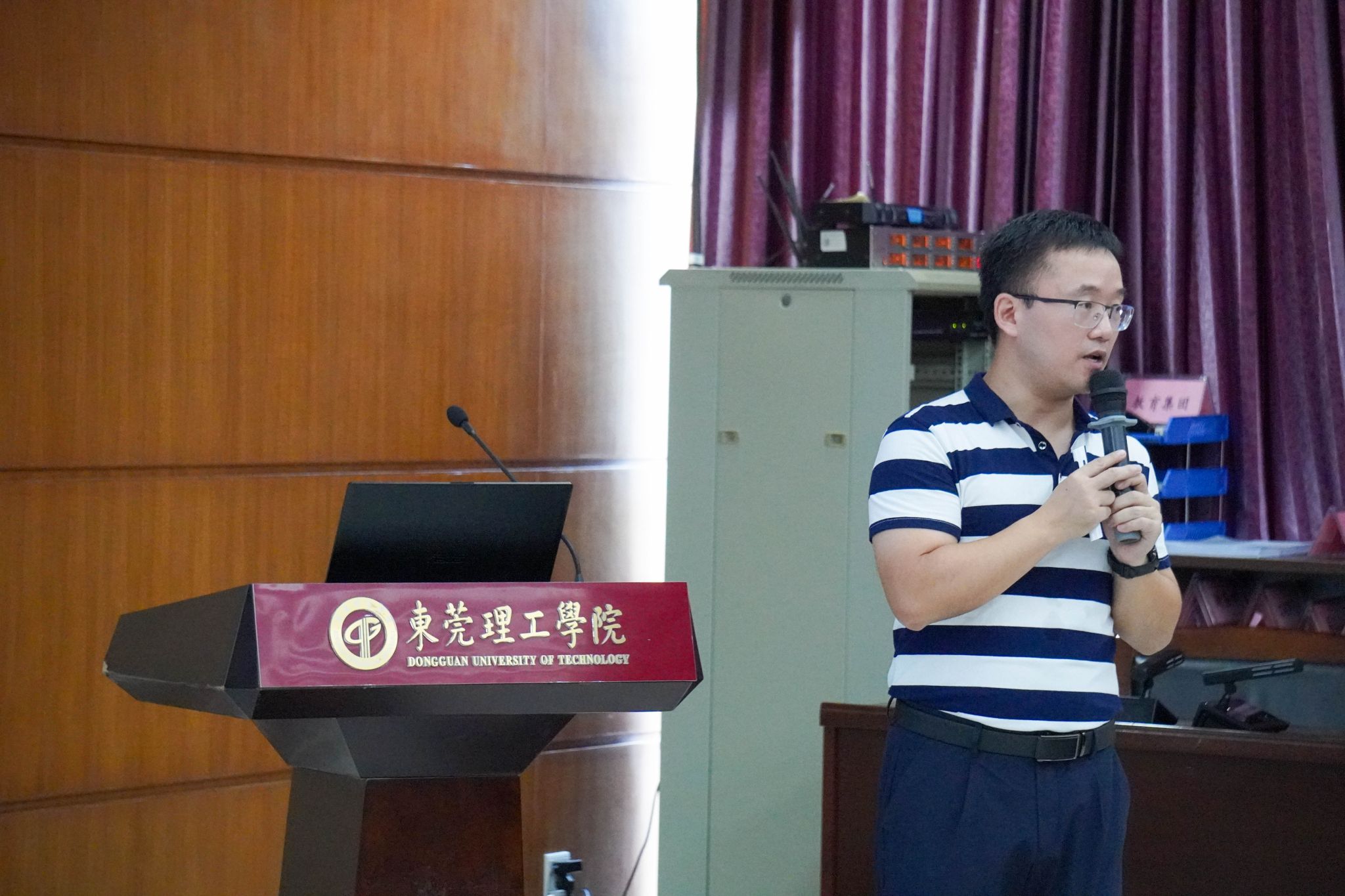 在学术会议中心306,桂山中学师生们观看了学校招生宣传片,化学工程与能源技术学院副院长何运兵为大家介绍东莞理工学院及化学工程与能源技术学院总体情况。他从课室、学生社区、饭堂等方面讲述学校的基础设施条件,并且在师资力量、教学成绩、奖助激励政策为大家进行了讲解。