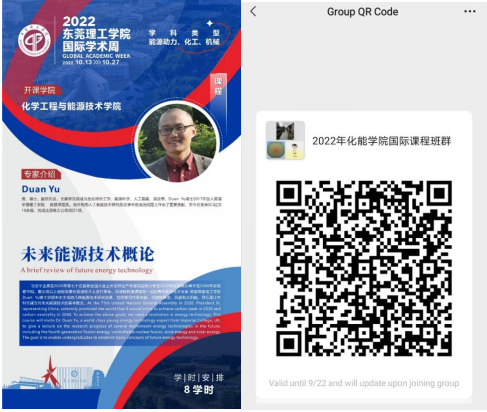 本届国际学术周,3044am永利集团官网将开展一门国际课程,邀请英国帝国理工学院Duan Yu博士讲授“未来能源技术概论”,助教为何奎博士,计划采用线上线下结合的方式进行,以下是专家简介和国际课程的内容简介,以及国际课程的海报和预报名微信群,请感兴趣的同学提前加入微信群,向老师了解具体课程信息,包括授课时间、方式和内容等。