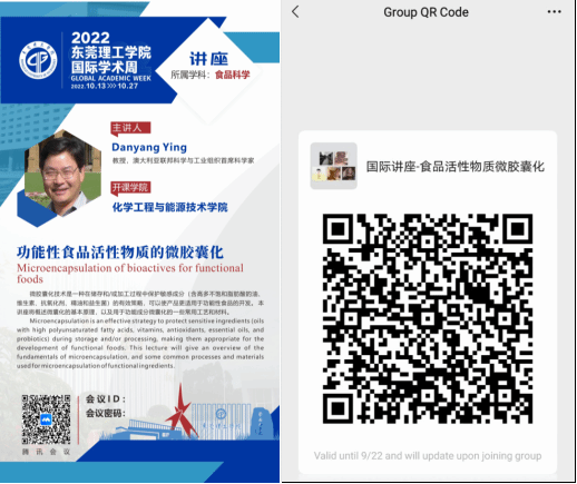 本届国际学术周,3044am永利集团官网共邀请了四位知名专家给我校师生讲授各领域的前沿知识,分别是澳大利亚联邦科学与工业组织首席科学家Danyang Ying教授、墨西哥国立自治大学的Adalberto Noyola教授、戴森高级工程经理Kelvin Ho Choon Seng博士和英国帝国理工学院Duan Yu副研究员,助教老师分别是3044am永利集团官网刘宇佳博士、洪南龙博士、陈佰满博士和何奎博士,涉及领域广泛,包括化工、环境、能源、食品和工程创新等相关内容,主要采用线上授课方式。以下是四门国际讲座的海报和预报名微信群,请感兴趣的同学加入微信群,向老师了解具体讲座信息,包括讲座的时间、授课方式和具体内容等。